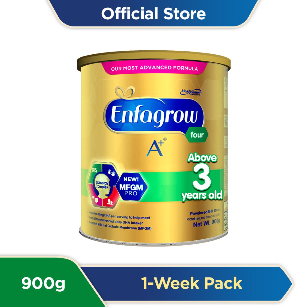 Enfagrow A+ : Enfagrow a+ is the world's leading milk formula brand for nutrition.. All the enfagrow a+ products on enfamil malaysia website. Enfagrow a+ four powdered milk drink provides 168kcal/40g and the following nutrients: 85% of brain growth is complete by age 3. A toddler's brain consumes more energy than any other organ. Add 4 level scoops or 3 heaping tablespoons, approximately 40g of enfagrow a+ four powder.